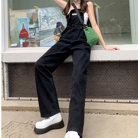 Quần yếm jean kaki dáng rộng, quần yếm jean nữ phong cách ulzzang_y6