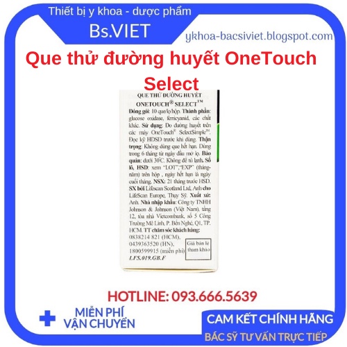 Một lọ gồm 10 que thử, trong một hộp có 1 lọ que thử được đóng gói rời từng lọ một, do đó loại bỏ hoàn toàn khả năng bị ảnh hưởng bởi không khí và độ ẩm, thuận tiện cho việc sử dụng và đảm bảo thời hạn sử dụng tối đa. Que thử đường huyết OneTouch Select (10 que) sử dụng men Glucose Oxidase (GOD) làm chất phản ứng, men này chỉ phản ứng với đường Glucose trong máu, do đó cho kết quả đo đường huyết có độ chính xác lên đến 99%. MÔ TẢ CHI TIẾT 🍀Thông tin sản phẩm Que thử đường huyết OneTouch Select: – Tên gọi khác: Test thử tiểu đường – Sử dụng cho thiết bị đo đường huyết OneTouch Select Simple – Sản xuất tại: LifeScan, Inc – Mỗi 1 sản phẩm Que thử đường huyết OneTouch Select được bán trên thị trường hiện nay bao gồm 10 que thử – Công nghệ: Cảm ứng điện cực – Thành phần: Men Glucose Oxidase (GOD) – Mỗi que thử trong sản phẩm lại được đóng gói riêng biệt, bảo vệ sản phẩm trước sự tác động của điều kiện môi trường và thời tiết. Đồng thời, đảm bảo được chất lượng sản phẩm cho những lần sử dụng của người bệnh. 🍀Công dụng của Que thử đường huyết OneTouch Select: – Que thử đường huyết OneTouch Select gồm có 10 que / 1 sản phẩm. Tương ứng với mỗi lần sử dụng, người dùng sẽ sử dụng 1 que để xác định tình trạng đường huyết chính xác nhất. – Que thử được tích hợp công nghệ cảm ứng điện cực có khả năng tự động hút máu lên và đo kết quả. Với tính năng này que chỉ cần 1 giọt nhỏ (khoảng 1.0uL) máu tươi trong mao mạch lấy từ đầu ngón tay hoặc lòng bàn tay. – Sản phẩm có sự ưu việt về công nghệ khi sử dụng GOD - đây là tên gọi của men Glucose Oxidase làm chất phản ứng. Nhờ vậy mà kết quả đo đường huyết của que thử có tính chính xác vô cùng cao. Bởi, GOD chỉ phản ứng với đường glucose có trong máu. – Để đảm bảo chất lượng của sản phẩm, các bạn nên đến những hiệu thuốc có uy tín, chất lượng. 🍀Thông tin cần lưu ý về que thử của máy đo đường huyết OneTouch Select: – Để lọ que thử nơi thoáng mát, khô ráo dưới 30ºC. Tránh xa ánh sáng mặt trời và nơi có nhiệt độ cao. Không được cất trong tủ lạnh. – Đựng que thử nguyên trong lọ mua về. Để tránh hỏng que hoặc nhiễm bẩn que, không được chuyển que sang các lọ hoặc hộp đựng khác. – Không dùng que thử đã quá hạn sử dụng in trên hộp vì có thể cho kết quả không chính xác. – Sau khi lấy 1 que ra khỏi lọ, đậy nắp và vặn chặt ngay lại. – Chỉ chạm vào bề mặt que thử khi tay sạch và khô. – Sử dụng ngay que khi lấy ra khỏi lọ. – Khi mở lọ que thử mới, ghi ngay ngày mở trên lọ. Sử dụng trong vòng 03 tháng kể từ ngày mở lọ. – Chỉ thấm máu hoặc dung dịch chuẩn vào que thử. – Không được bẻ cong, cắt hay làm biến dạng que thử bằng bất cứ hình thức nào. – Que thử OneTouch Select chỉ sử dụng 1 lần rồi bỏ. Không được sử dụng lại que đã được thấm máu. – Khuyên bạn nên thử vào những thời điểm thích hợp trong ngày để có thể đưa ra kết quả chính xác. #quethuduonghuyetonetouchselectplus#quethuduonghuyetonetouchselectsimple#quethutieuduongonetouchselect#quethuduonghuyetonetouch#quethuduonghuyetgiabaonhieu#thuduonghuyet#muaquethuduonghuyet