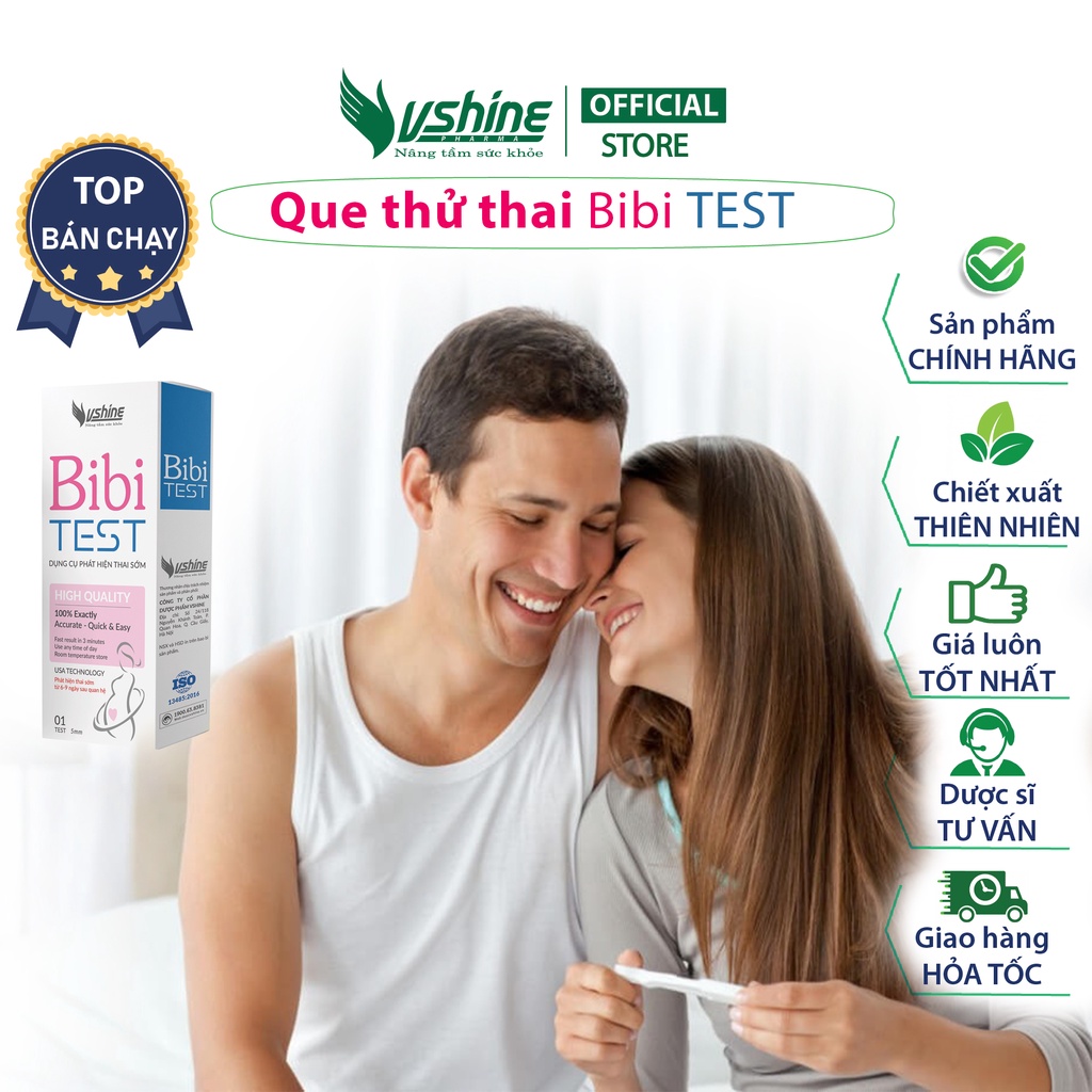 Que thử thai BiBi Test - Dụng cụ phát hiện thai sớm Ưu điểm sản phẩm - Que thử thai BiBi Test giúp bạn phát hiện thai sớm một cách Nhanh chóng - Chính xác - Sản phẩm mẫu mã đẹp. - Có kết quả ngay sau 6 - 9 ngày sau khi quan hệ. Không nên kiểm tra trước 6 ngày. Thời gian thử thai lý tưởng nhất là buổi sáng sau khi thức dậy. - Sử dụng cốc chống tràn với chất liệu là nhựa nguyên sinh và có tay cầm chống bẩn. - Sản phẩm đạt tiêu chuẩn: ISO 13485:2016. - Bảo quản được ở nhiệt độ từ 4 - 30 độ C Hướng dẫn sử dụng dụng cụ phát hiện thai sớm Bibi Test - Tiến hành test với que thử thai + Lấy nước tiểu vào chén nhựa + Lấy que thử ra khỏi túi, phải dùng ngay trong vòng 10 phút (mỗi que thử chỉ sử dụng một lần). + Nhúng que thử vào cốc nước tiểu theo chiều mũi tên chỉ xuống, sao cho mặt nước tiểu không ngập quá đầu mũi tên in trên que thử. + Sau 5 giây, lấy que thử đặt nằm ngang trên mặt phẳng khô, sạch, đọc kết quả sau 3 phút (quá 30 phút kết quả có thể không còn chính xác) - Cách đọc kết quả que thử thai: + ĐÃ CÓ THAI: Trên que thử xuất hiện 2 vạch ngang màu hồng. + KHÔNG CÓ THAI: Trên que thử xuất hiện 1 vạch ngang màu hồng. + KHÔNG ĐẠT: Trên que thử không xuất hiện vạch ngang màu hồng nào (do thao tác thử sai, mẫu nước tiểu không đạt, hoặc bảo quản không đúng. Nên thử lại bằng que thử mới. ========================== Lưu ý: - Độ đậm của vạch màu hồng thứ 2 phụ thuộc vào tuổi thai của bạn - Thời điểm thử tốt nhất vào lúc sáng sớm sau khi thức dậy (lúc đó hCG - hormone giúp phát hiện thai có nồng độ cao nhất). - Độ đậm của vạch màu hồng thứ 2 phụ thuộc vào tuổi thai của bạn. Nếu sau khoảng 1 tuần kể từ lần thử que đầu tiên vẫn chưa xuất hiện kinh nguyệt, vui lòng thử lại lần nữa để có kết quả chính xác. Vì trong một số trường hợp, quá trình thụ thai được thực hiện ở cuối chu kỷ kinh nguyệt nên khi thử thai lần đầu cho kết quả chưa được chính xác. Những trường hợp người phụ nữ đang bị nhiễm nấm âm đạo, bệnh phụ khoa…. cũng có thể cho kết quả không chính xác (do độ pH trong nước tiểu bị thay đổi). * NSX và HSD in trên bao bì sản phẩm. Hạn sử dụng 3 năm kể từ ngày sản xuất * Quy cách: Hộp 1 que * Thương hiệu: VShine * Thương nhân chịu trách nhiệm sản xuất và phân phối: Công ty cổ phần Dược phẩm Vshine Địa chỉ: Số 24/118 Nguyễn Khánh Toàn, P. Quan Hoa, Q. Cầu Giấy, Hà Nội. Vshine Store xin chân thành cảm ơn quý khách vì đã luôn tin tưởng và lựa chọn sản phẩm của chúng tôi. Nếu có bất kỳ thắc mắc, vui lòng liên hệ ngay với Vshine Store tại Shopee chat. Chúng tôi luôn ở đây và sẵn sàng giải đáp cho bạn! —----------------------- THÔNG TIN VỀ THƯƠNG HIỆU Công ty Cổ phần Dược phẩm VSHINE được thành lập từ năm 2015 là doanh nghiệp chuyên phân phối dược phẩm, mỹ phẩm và TPCN. Dược phẩm VSHINE luôn luôn đầu tư cơ sở vật chất và nguồn nhân lực nhằm cung cấp những sản phẩm chất lượng đáp ứng nhu cầu chăm sóc sức khỏe người tiêu dùng. Chúng tôi luôn luôn cố gắng sản xuất và phân phối những sản phẩm được người tiêu dùng tin tưởng và lựa chọn trong nhiều năm qua như ( Xịt họng Covax, Viên uống chống nắng DSK UV,Bổ Não trẻ em VSK, Kẽm VSK, VSK Sun Heah, VSK Detox, HoVshine Jelly,….. ---------------------------- #quethuthaisom #quethuthai #quethuthainhanh #quethuthaiBibiTest #vshine #bibitest