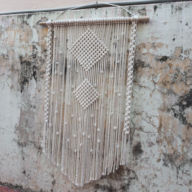 Rèm Macrame Trang Trí 70cm được làm thủ công từ sợi cotton 100% và cây gỗ, là món đồ trang trí tường xinh đẹp. Sản phẩm thủ công gần gũi thiên nhiên sẽ mang lại cảm giăc vintage, boho, nét đẹp nhẹ nhàng cho không gian sống của bạn. Kích thước 70x110cm Màu sắc: gồm 12