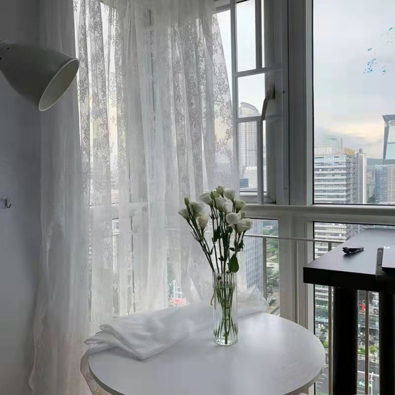 Rèm cửa sổ ngắn thêu ren màu trắng phong cách Bắc Âu cho gia đình