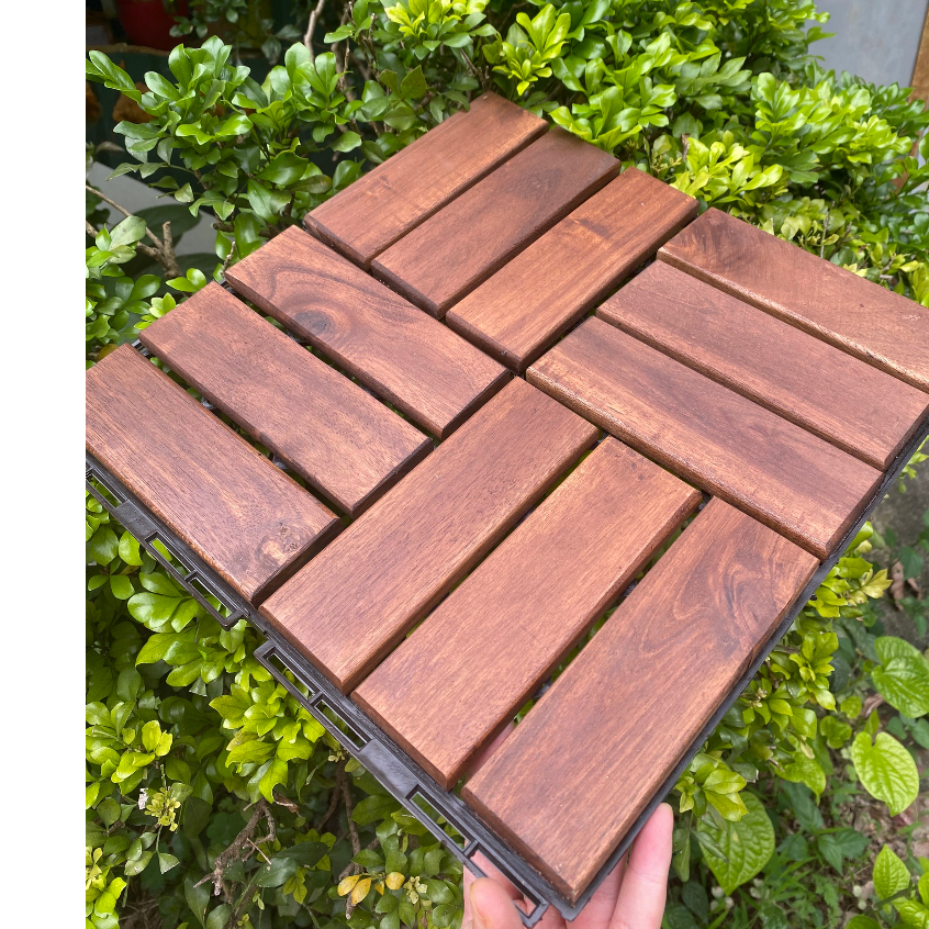 Sàn gỗ vỉ nhựa lắp ghép 1m2=11 tấm - Thảm trải sàn ban công , gỗ lót nhà tắm, ban công sân vườn chống nắng nóng decor