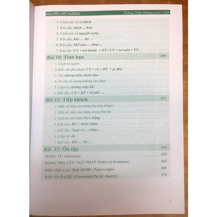 Sách - Combo Tiếng Việt Nâng Cao Dành Cho Người Nước Ngoài Quyển 1 + Quyển 2 Tác giả: Nguyễn Việt Hương Nhà xuất bản: NXB Đại Học Quốc Gia Hà Nội Đơn vị phát hành: Trung tâm Kinh doanh Xuất bản và Phát hành sách Ngày xuất bản: 2020 Số trang: 676 Kích thước: 19 x27 cm Loại bìa: Bìa mềm LỜI GIỚI THIỆU: Bộ sách "Tiếng Việt Nâng Cao Dành Cho Người Nước Ngoài Quyển 1 + Quyển 2" của Tiến sĩ Nguyễn Việt Hương là sự tiếp nối bộ 2 cuốn sách "Tiếng Việt Cơ Sở Dành Cho Người Nước Ngoài Quyển 1 + Quyển 2" được biên soạn theo chiến lược dạy tiếng Việt hiện đại: Hành vi giao tiếp ngôn từ. Sách có hệ thống bài tập sử dụng, rèn luyện kỹ năng phong phú và giản dị. Phần dịch Việt - Anh tạo điều kiện thuận lợi cho người dạy và người học biết tiếng Anh... NỘI DUNG CHÍNH: Tiếng Việt Nâng Cao Dành Cho Người Nước Ngoài Quyển 1 ... Bài 1. Chuẩn bị đi Việt Nam Bài 2. Ở khách sạn Bài 3. Ở nhà hàng Bài 4. Các dịch vụ Bài 5. Thuê nhà Bài 6. Ôn tập Bài 7. Xin học Bài 8. Làm quen với cuộc sống ở Việt Nam Bài 9. Thói quen, sở thích, nguyện vọng Bài 10. Tình bạn Bài 11. Tiếp khách Bài 12. Ôn tập Tiếng Việt Nâng Cao Dành Cho Người Nước Ngoài Quyển 2 ... Bài 1. Chăm sóc sức khoẻ Bài 2. Thăm hỏi Bài 3. May sắm Bài 4. Tham quan Bài 5. Giải trí Bài 6. Ôn tập Bài 7. Thể thao Bài 8. Giao thông 9. Sinh hoạt ở Việt Nam Bài 10. Các thành phố lớn Bài 11. Học hành Bài 12. Ôn tập