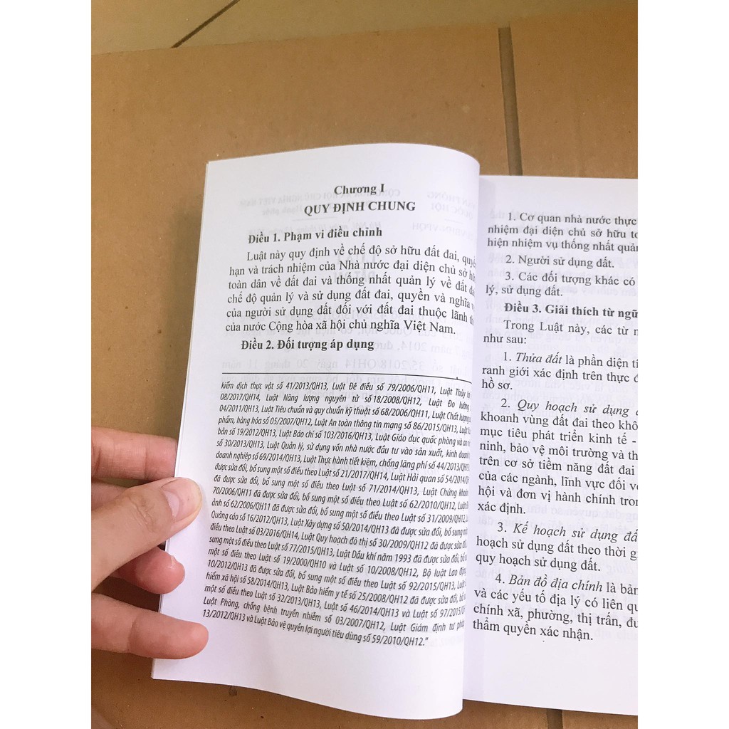 Sách - Luật Đất Đai (Sửa Đổi, Bổ Sung Năm 2018) Nội dung sách bao gồm các văn bản quy phạm pháp luật liên quan đến quyền hạn và trách nhiệm của Nhà nước đại diện chủ sở hữu toàn dân về đất đai và thống nhất quản lý về đất đai, chế độ quản lý và sử dụng đất đai, quyền và nghĩa vụ của người sử dụng đất. Danh sách chương Chương 1: Quy Định Chung Chương 2: Quyền Và Trách Nhiệm Của Nhà Nước Đối Với Đất Đai Chương 3: Địa Giới Hành Chính Và Điều Tra Cơ Bản Về Đất Đai Chương 4: Quy Hoạch, Kế Hoạch Sử Dụng Đất Chương 5: Giao Đất, Cho Thuê Đất, Chuyển Mục Đích Sử Dụng Đất Chương 6: Thu Hồi Đất, Trưng Dụng Đất, Bồi Thường, Hỗ Trợ, Tái Định Cư Chương 7: Đăng Ký Đất Đai, Cấp Giấy Chứng Nhận Quyền Sử Dụng Đất, Quyền Sở Hữu Nhà Ở Và Tài Sản Khác Gắn Liền Với Đất Chương 8: Tài Chính Về Đất Đai, Giá Đất Và Đấu Giá Quyền Sử Dụng Đất Chương 9: Hệ Thống Thông Tin Đất Đai Và Cơ Sở Dữ Liệu Đất Đai Chương 10: Chế Độ Sử Dụng Các Loại Đất Chương 11: Quyền Và Nghĩa Vụ Của Người Sử Dụng Đất Chương 12 : Thủ Tục Hành Chính Về Đất Đai Chương 13: Giám Sát, Thanh Tra, Giải Quyết Tranh Chấp, Khiếu Nại, Tố Cáo Và Xử Lý Vi Phạm Pháp Luật Về Đất Đai Chương 14: Điều Khoản Thi Hành Luật đất đai - Luật số 45/2013/QH13 điều chỉnh Chương trình xây dựng luật, pháp lệnh nhiệm kỳ Quốc hội khóa XIII, năm 2013 và Chương trình xây dựng luật, pháp lệnh năm 2014 do Quốc hội ban hành, sửa đổi bổ sung một số điều so với Luật Đất đai 2003, Luật Đất đai mới nhất này có 14 chương với 212 điều, tăng 7 chương và 66 điều. Luật có hiệu lực từ ngày 01/07/2014. Ngày xuất bản 10-2020 Kích thước 13 x 19 cm Nhà xuất bản Nhà Xuất Bản Lao Động Loại bìa Bìa mềm Số trang 267