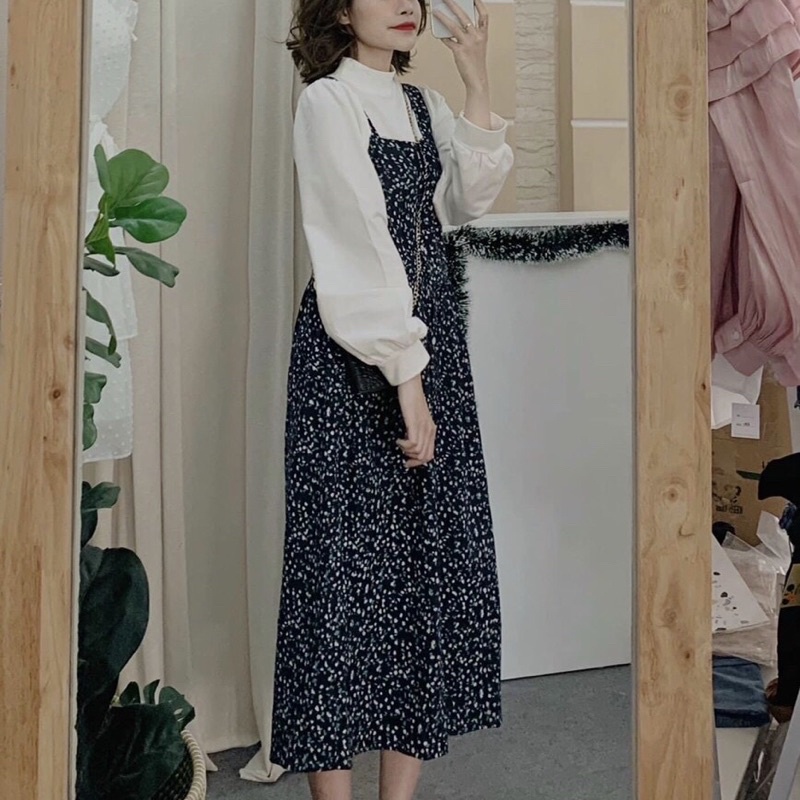Sét Áo Tay Dài Mix Yếm Hoa Dày Dặn 🦋FREESHIP 🦋Yếm Dáng Dài Kiểu Vintage Siêu Xinhh