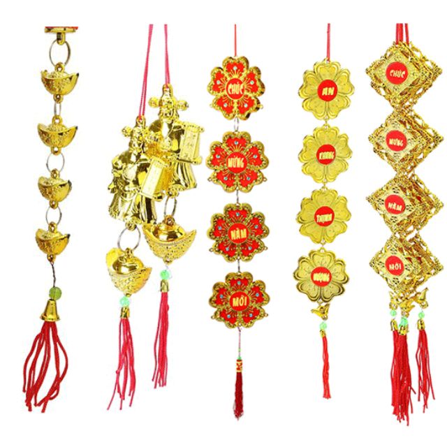 Bộ gồm 10 cái giống nhau hoặc theo khác nhau. Sản phẩm gồm nhiều loại, nhiều kích thước khác nhau. Shop giao ngẫu nhiên hoặc nt để chọn mẫu. Bộ 10 dây treo Chúc Mừng Năm Mới tết 2020 dây treo phong thủy giúp cho gia đình bạn đầm ấm và sung túc trong năm mới. Sản phẩm thích hợp treo trên chậu mai, đào; trước cửa nhà hoặc trên tường...góp phần mang đến không khí xuân rộn ràng, may mắn và bình an cho mọi nhà. Chất liệu: nhựa tổng hợp + vải Chiều ngang : 3.5cm x Dài vải 12 cm .Phần tua dua có gắn thêm đồng tiền vàng hoặc quả cầu . Chữ vàng in trên nền đỏ nổi bật. Nhiều câu chúc ý nghĩa giúp mang lại may mắn cho gia chủ và mọi người. .Các câu chúc: -Chúc mừng năm mới -An khanh thịnh vượng -Mua may bán đắt -Thượng lộ bình an -Tấn tài tấn lộc -Tiền vô như nước -Gia đình hạnh phúc -Vạn sự như ý