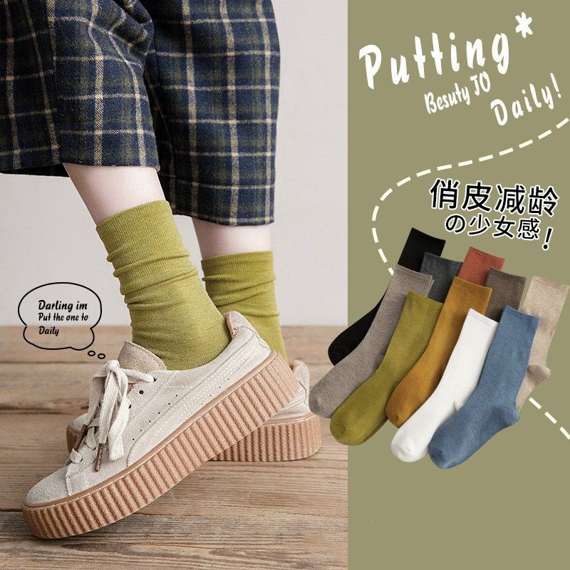Sét 5 đôi tất vớ len gân tăm, nhiều màu,trơn basic phong cách thời trang Hàn Quốc