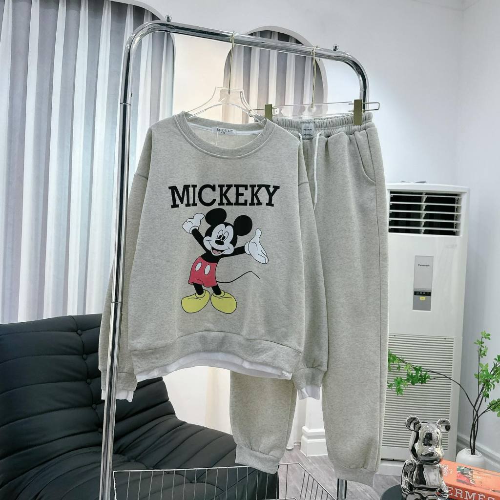 SÉT BỘ ÁO NỈ PHỐI MICKEY, CHẤT NỈ TRẦN BÔNG