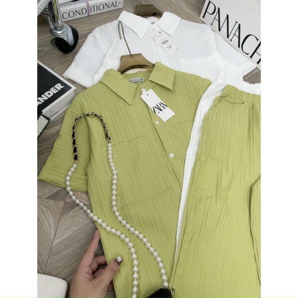 Sét bộ đi chơi nữ ,Sét đũi sọc Quần Dài Áo Sơ Mi Ngắn Tay Quảng Châu Cao Cấp