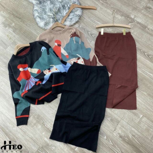 Set áo len kèm chân váy so hott về tiếp. Hàng dày vừa phải, mặc thời tiết này rất ok. Giá #270k nha khách iu.