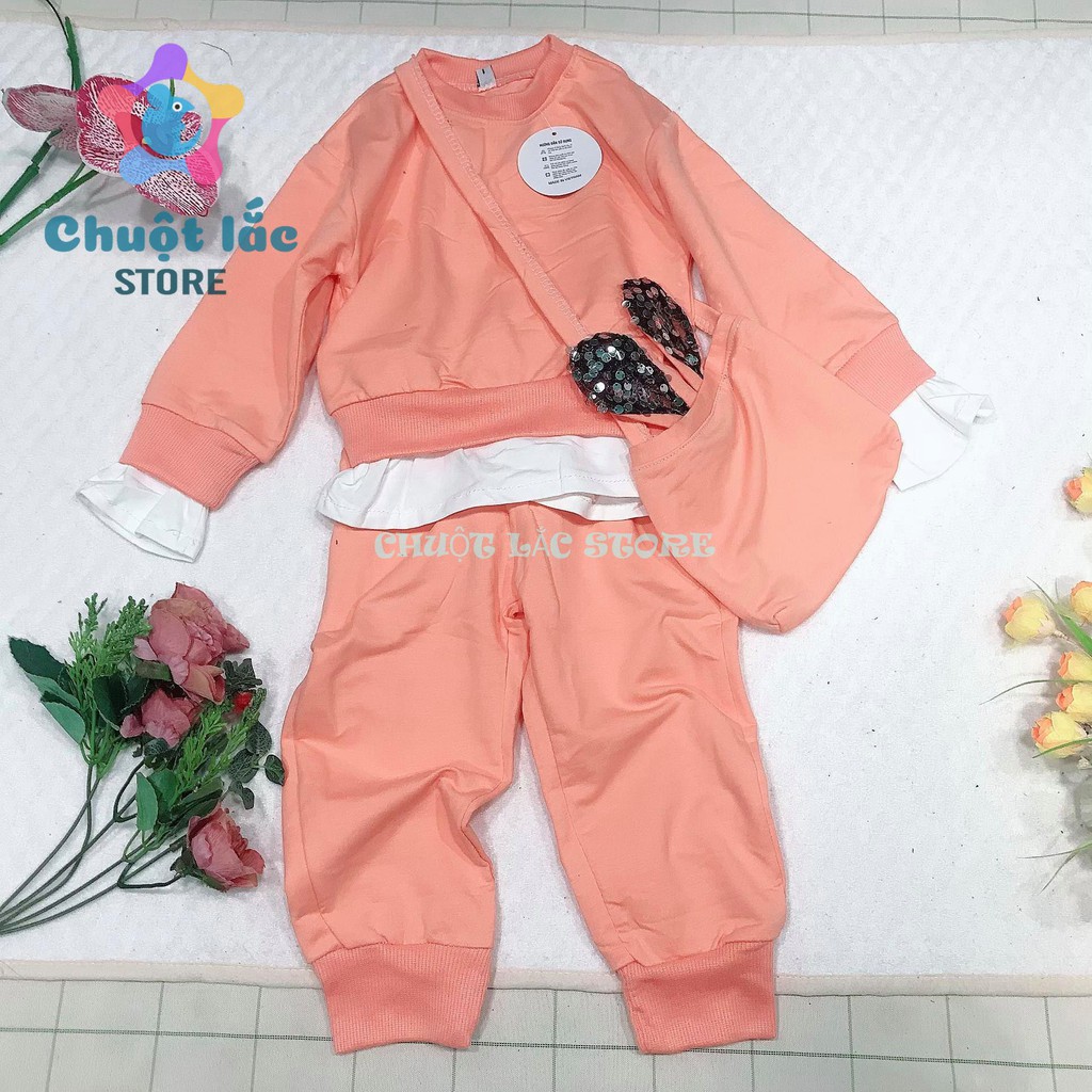 Sét Bộ Quần Áo Bé Gái Chuột Lắc Store Thun Cotton 4 Chiều Kèm Túi Đeo 10Kg Đến 22Kg