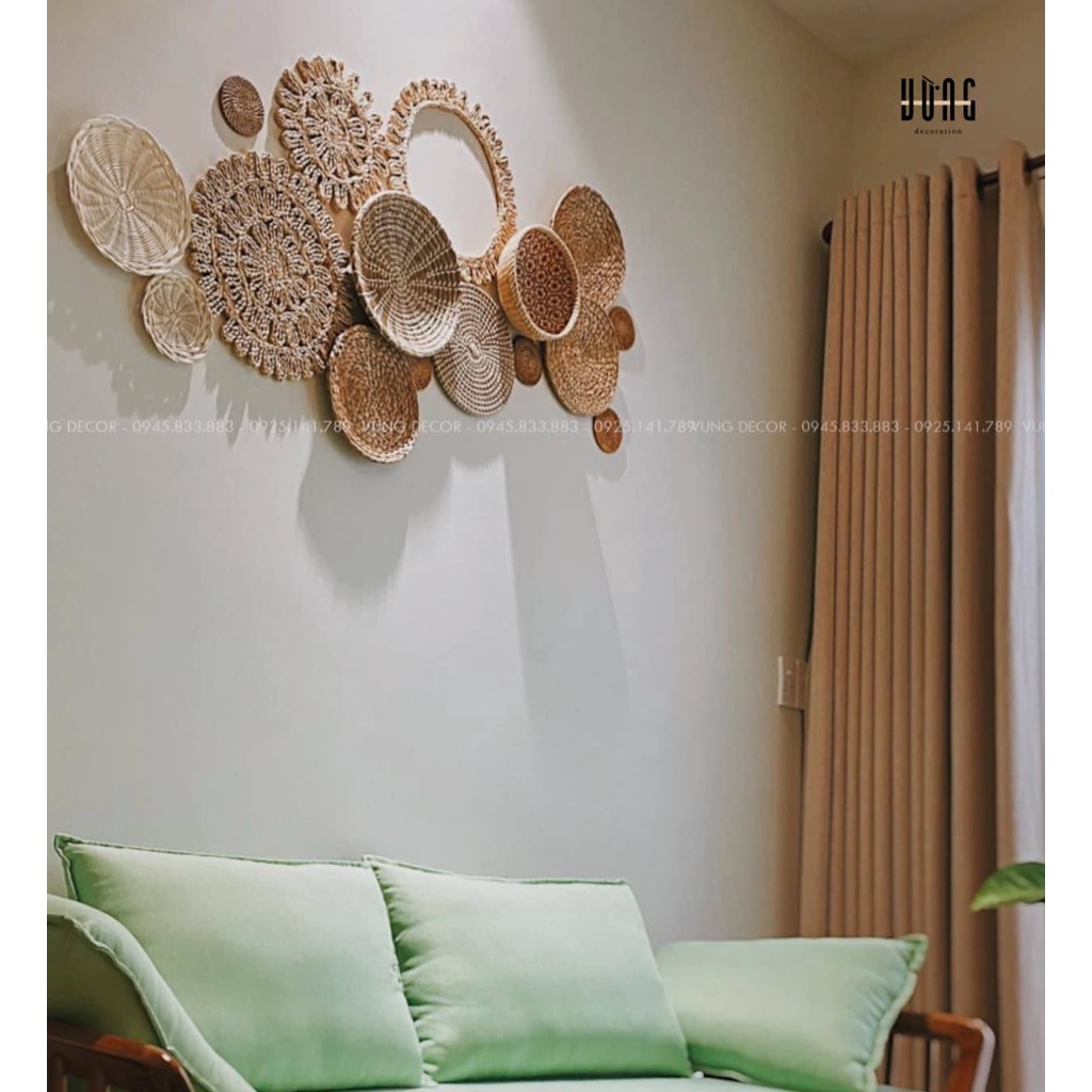 Sét Cói Trang Trí VỪNG DECOR. Trang Trí Nhà, Quán Cà Phê, Nhà Hàng, HomeStay - Hàng VNXK Set 16 đĩa ✔ Bộ cói bao gồm 16 đĩa ✔ Kích thước tổng thể như ảnh : ngang 1.6m cao 90cm ✔ Kích thước lẻ : 10cm - 13cm - 18cm - 20cm - 25cm - 30cm - 38cm ✔ Nguyên liệu được làm