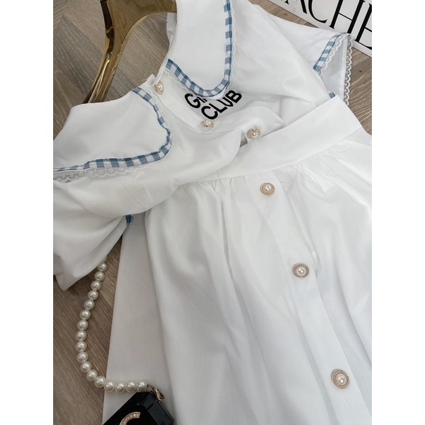 SÉT VÁY GIRIL CLUB CỔ SEN VIỀN KẺ KEM CV DÀI HÀNG L1 Ạ