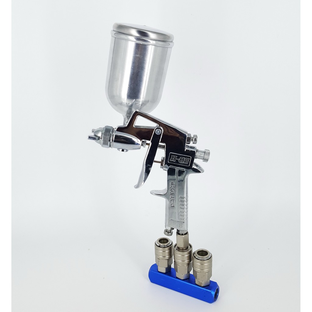 Thông tin chi tiết: - Model : H85 - Hãng sản xuất :  Trung Quốc - Ứng dụng : Phun cửa sắt, phun hàng rào, phun pu Thông số kỹ thuật - Loại: Bình Trên - Đường kính lỗ phun: 1.5 mm - Khoảng cách phun: 200 mm - Áp lực hơi vào (Mpa): 0.24 - Lượng hơi tiêu thụ : 75 (Lít/p