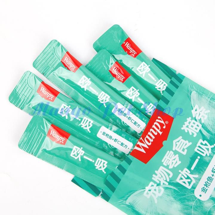 Súp thưởng Wanpy 5 thanh các vị dạng cream -Định lượng: 14gx5 gói/bịch – Dạng gói ăn liền, sử dụng được ngay khi xé bao bì. -Hiện có 5 vị chủ yếu ****Hồng:Cá Ngừ,Cá Tuyết ****Tím:Cá Ngừ,Cá Hồi ****Xanh Lam:Gà ****Xanh lục:Cá Ngừ,Tôm ****Vàng:Cá Ngừ Sò Điệp -Hạn sử dụng:3 năm từ ngày sản xuát in trên bao bì tháng