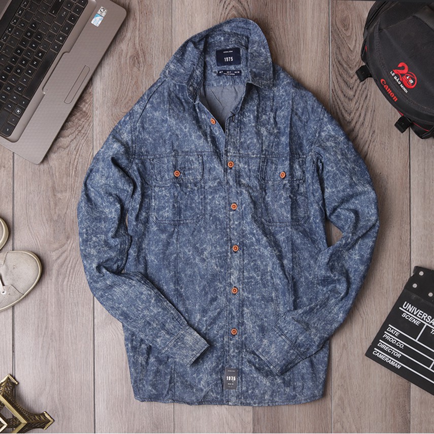 Sơ mi denim zara 1975 vải giặt ảnh thất