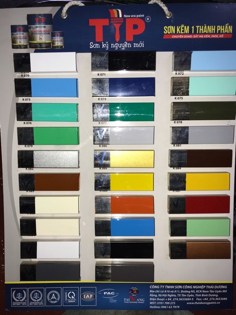 SƠN KIM LOẠI TIP 1K Là sản phẩm sơn đặc biệt gốc nhựa Acrylic 1 thành phần có chức năng trang trí và bảo vệ bề mặt gỗ, kim loại (đặc biệt sắt mạ kẽm) TÍNH NĂNG ĐẶC BIỆT Bám dính cao Bền màu cao Không ngã vàng (đối với màu trắng) Màu sắc phong phú, bề mặt bóng mịn Dễ sử dụng (không cần pha trộn, tiếp tục sử dụng sản phẩm dở dang nếu bảo quản tốt) CÔNG DỤNG: Sơn phủ trực tiếp lên sắt mạ kẽm, inox, kính, gỗ, nhựa, thép, kim loại.... HƯỚNG DẪN SỬ DỤNG Chuẩn bị bề mặt: bề mặt cần sơn phải khô và sạch không dính tạp chất như dầu, mỡ, bụi bẩn. Dụng cụ thi công: súng phun, cọ, con lăn Chất pha loãng: Butyl acetate Độ pha loãng: Cọ, con lăn 10 - 15%; súng phun 15 - 20% Bảo quản: nơi khô thoáng, tránh tiếp xúc trực tiếp với ánh nắng. Luôn đậy kín nắp. Thông tin an toàn sức khỏe và môi trường: Tránh xa môi trường nhiệt đô cao và lửa. Để xa tầm tay trẻ em. Trang bị bảo hộ khi thi công Màu sắc: Sơn trắng mờ, đen mờ, trắng, đen, xanh dương lợt, xanh dương, xanh dương đậm, xanh lá lợt, xanh lá, xanh lá đậm, rêu, cẩm thạch, xám lợt, xám đậm, bạc, nhũ vàng, nâu, cam đậm, vàng chanh, vàng nghệ, kem lợt, cam , đỏ, kem đậm, xanh dương lợt, cốm, nhũ đồng Định mức: 1kg sơn phủ : 4-5m2 bề mặt +Quý khách đặt hàng vui lòng vào phần phân loại để chị màu sắc +Các màu trên Shope đăng là màu thông dụng nếu quý khách có nhu cầu các màu khác vui lòng chat với Shop để Ck thể hơn Quy cách đóng gói +Lon 3kg Sỉ từ 1 thùng 12 lon, vui lòng liên hệ qua Sđt &zalo:0987691639