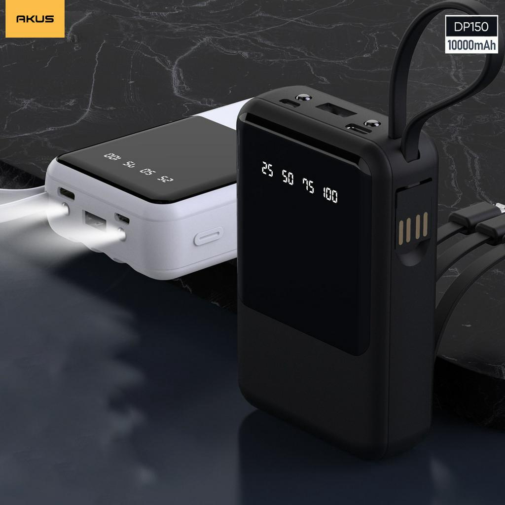 Sạc dự phòng 10000mah akus-dp150 tích hợp đèn led, thiết kế mini siêu nhỏ