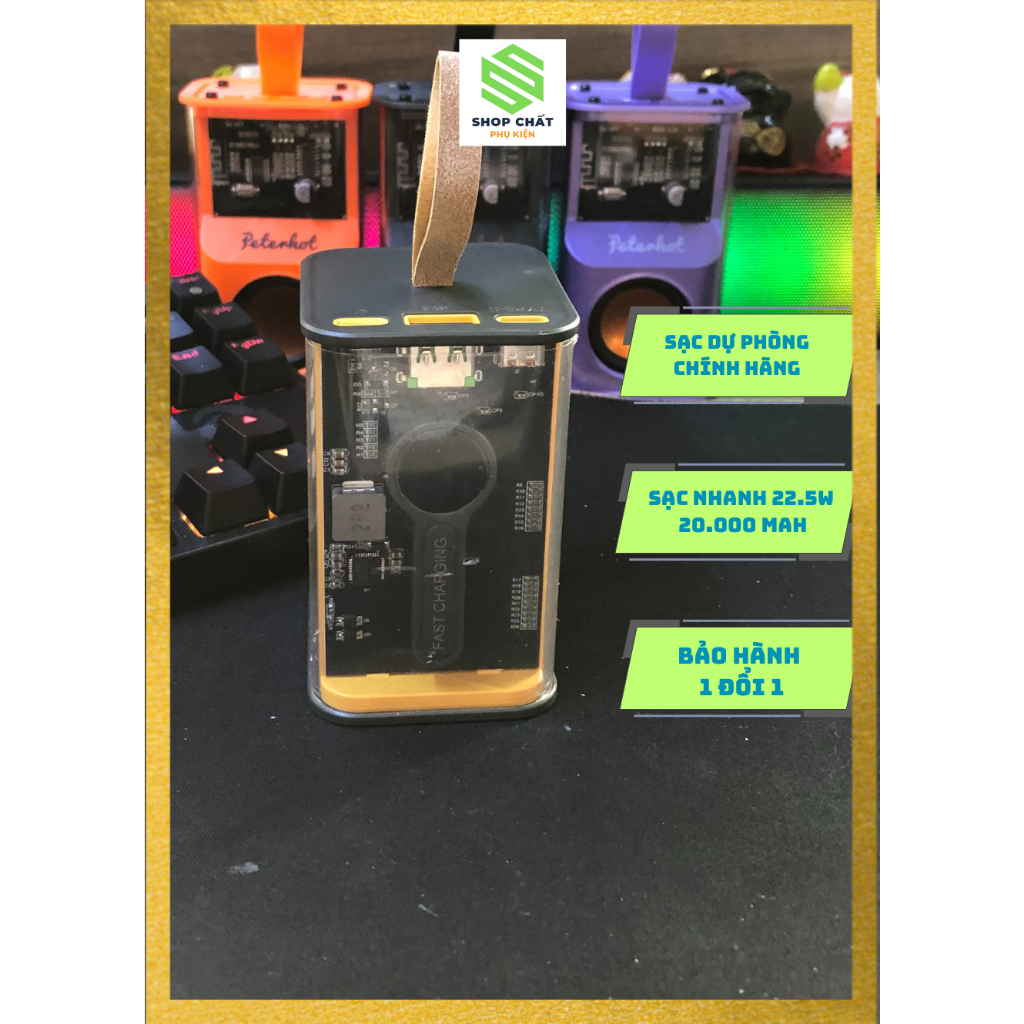 Sạc dự phòng trong suốt 20000 mah , sạc dự phòng chính hãng đúng dung lượng có đồng hồ báo dòng sạc PHỤ KIỆN SHOP CHẤT