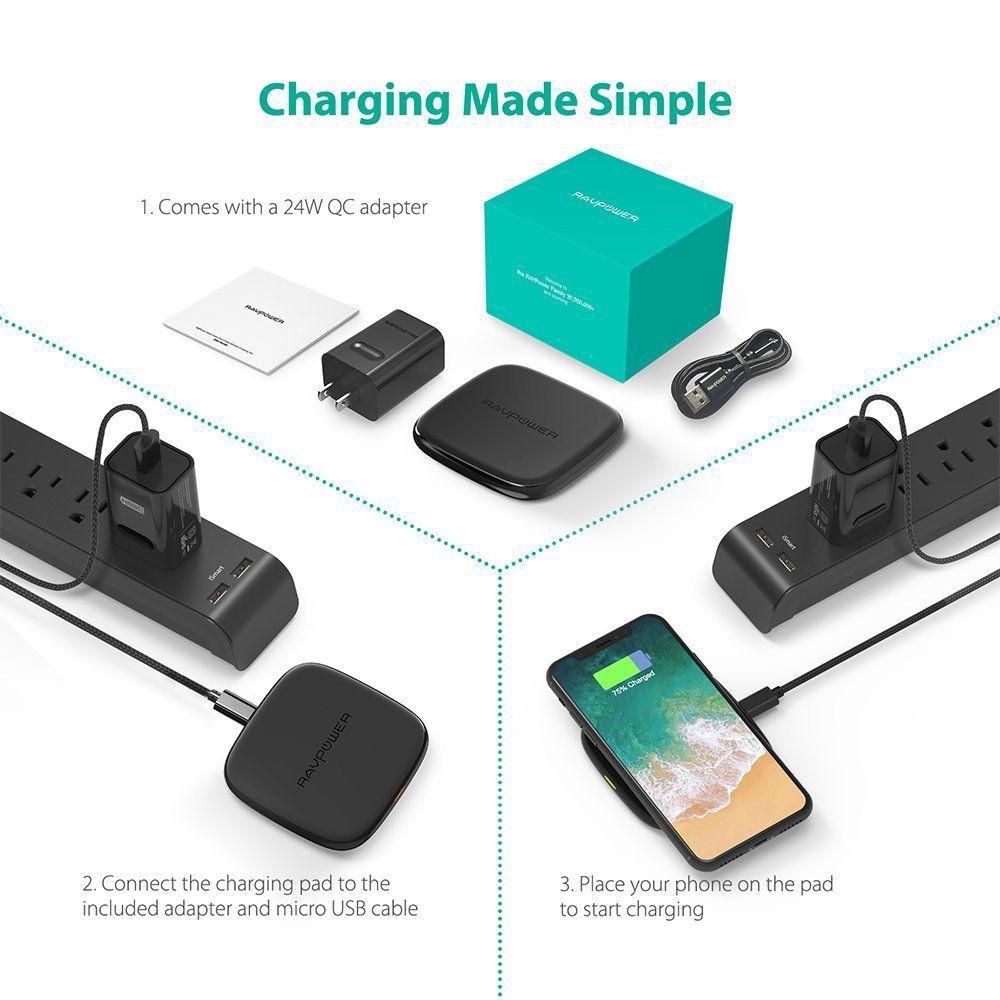 2. Kiểm soát nhiệt độ 3 cấp hiệu suất sạc tối ưu, đế sạc thiết kế phân tán nhiệt nhanh hơn và hiệu quả hơn 15% so với các bộ sạc không dây truyền thống, ==>>Hệ thống sạc nhanh hơn, an toàn hơn và sử dụng ít điện hơn. 4. Tốc độ 7.5W cho iPhone X/8 Plus/ 8 sử dụng iOS 11.2 hoặc cao hơn để sạc nhanh, nhanh hơn 2 lần so với các bộ sạc không dây 3.5W - 5W truyền thống. ết kế mới SIÊU mỏng, SIÊU nhẹ: Kết hợp giữa nhôm và nhựa cao cấp có trọng lượng siêu nhẹ chỉ hơn 80g, độ dày chỉ 1,2cm. 7. Tương thích 100% với mọi thiết bị của Apple và hỗ trợ khi cập nhật lên phiên bản iOS mới nhất 8. Sạc an toàn với các hệ thống bảo vệ quá tải, quá dòng, quá điện áp, quá nóng và ngắn mạch ***Thông số kỹ thuật: - Thương hiệu: RAVPower (Mỹ) - Model: RP-PC066 - Kích thước: 89 mm x 89 mm x 12 mm - Trọng lượng: 82 gram - Input: 9V-12V/2.0A - Output: 10W Max - Chứng chỉ: CE/FCC/RoHS/MFI từ Apple - Fullbox: Micro USB Cable (120 cm) + 24W Quick Charge 3.0 Charger + Sách hướng dẫn + RAVPower Alpha Series Fast Charge Wireless Charging Pad (model RP-PC066) Giá sản phẩm trên Tiki đã bao gồm thuế theo luật hiện hành. Bên cạnh đó, tuỳ vào loại sản phẩm, hình thức và địa chỉ giao hàng mà có thể phát sinh thêm chi phí khác như phí vận chuyển, phụ phí hàng cồng kềnh, thuế nhập khẩu (đối với đơn hàng giao từ nước ngoài có giá trị trên 1 triệu đồng).....