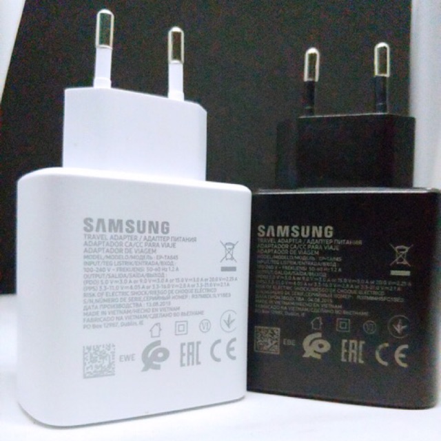 Sạc siêu nhanh 45W Super Fast Charging Samsung Galaxy Note 10/ Note 10 Plus chính hãng Thiết kế củ sạc cho Galaxy Note 10 Plus là củ sạc siêu nhanh 45W thiết kế gọn nhẹ hiện đại, dễ mang theo bên mình, đạt tiêu chuẩn chống cháy nổ, hỗ trợ cho cả Galaxy Note - Về công suất đầu ra vào của củ sạc Note 10 Plus cũng được cải tiến với tốc độ sạc nhanh cho điện thoại Samsung Note 10 Plus cũng được cải tiến hơn - Cam kết là củ sạc nhanh 45W cho Note 10 Plus chính hãng samsung - Bảo hành 06 tháng 1 đổi 1 - Với củ sạc siêu nhanh 45W Note 10 Plus chính hãng giúp nguồn vào ra ổn định, chống cháy nổ. Đặc biệt không lo lắng về vấn đề chai pin , phồng pin đặc biệt là vấn đề loạn cảm ứng. * Thông số củ sạc: Xuất xứ: Made In VietNam chính hãng Samsung Model: EP-TA845 Input: 100-240V 50-60Hz 1.2A Output: + (POD) 5.0V - 3.0A or 9.0V - 3.0A or 15.0V - 3.0A or 20.0V - 2.25A + (PPS) 3.3-11V - 4.05A or 3.3-16.0V - 2.8A or 3.3-21.0V - 2.1A + Đặc biệt hỗ trợ sạc nhanh chuẩn PD cho cả Iphone và hỗ trợ tất cả các chuẩn sạc nhanh Fast Charging