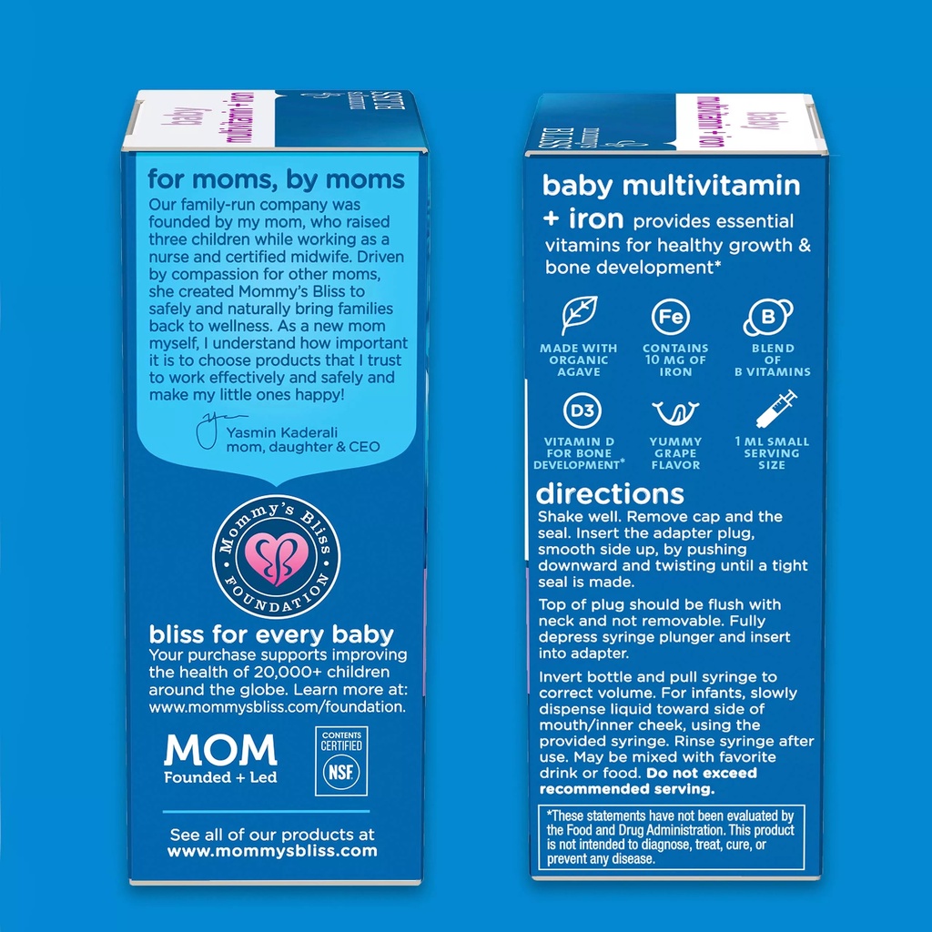Sắt cho bé từ sơ sinh dạng hữu cơ kèm vitamin tổng hợp MOMMYS BLISS 30ml ngừa thiếu máu, biếng ăn, hàng Mỹ đủ bill