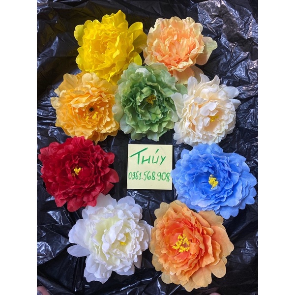 Sỉ 1 đầu bông hoa mẫu đơn vải V01 - 13cm loại đẹp | Phụ kiện trang trí Đầu bông hoa mẫu đơn vải sử dụng trang trí oản Tài Lộc, oản dâng lễ Gia Tiên, Thần Tài, ... Đầu bông hoa mẫu đơn vải là phụ kiện không thể thiếu khi làm oản tài lộc, bên cạnh các phụ kiện khác gi