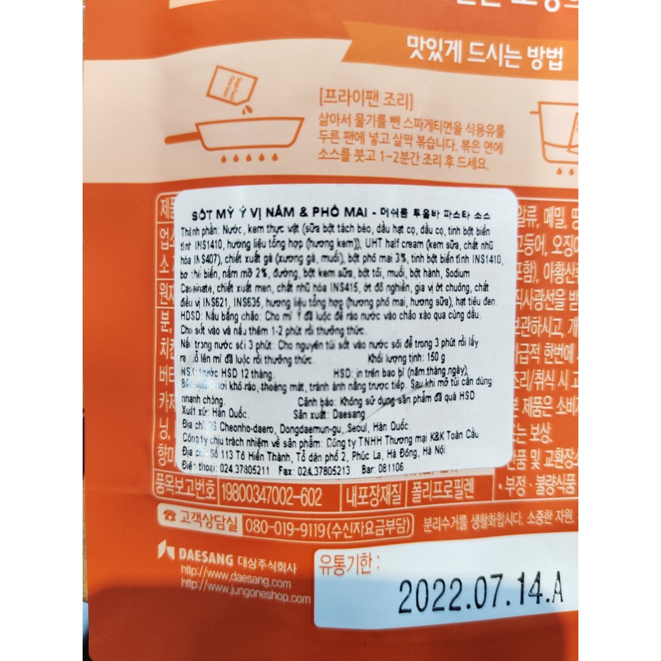 Sốt mì ý TOOWOOMBA vị nấm phô mai hàn quốc 150g - 양송이 & 치즈 파스타소스