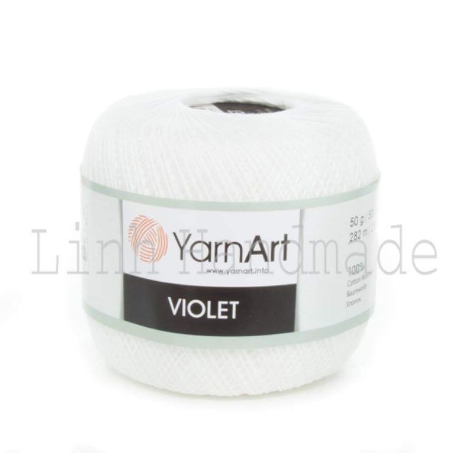 Yarn Art Violet Xuất xứ: Thổ Nhĩ Kỳ Thành phần: 100% Mercerized Cotton Trọng lượng: 50g Độ dài: 282m Kim móc: 2.5mm Kim đan: 2.5mm Sợi Violet được làm từ 100% Cotton nên sản phẩm làm từ loại sợi này không bị bai nhão, xù hay phai màu chị em nhé. Sợi Violet này phù hợp để chị em làm những sản phẩm từ bé tí xíu cần độ tinh xảo như hoa tai, vòng cổ, cài tóc, đồ cho búp bê.. cho đến những sản phẩm phức tạp như áo váy, đầm kiểu, váy cưới,... hoặc cũng có thể chập đôi lại để móc Bikini. Loại sợi này dùng để đan, móc, tattimg hay thêu đều được nhé