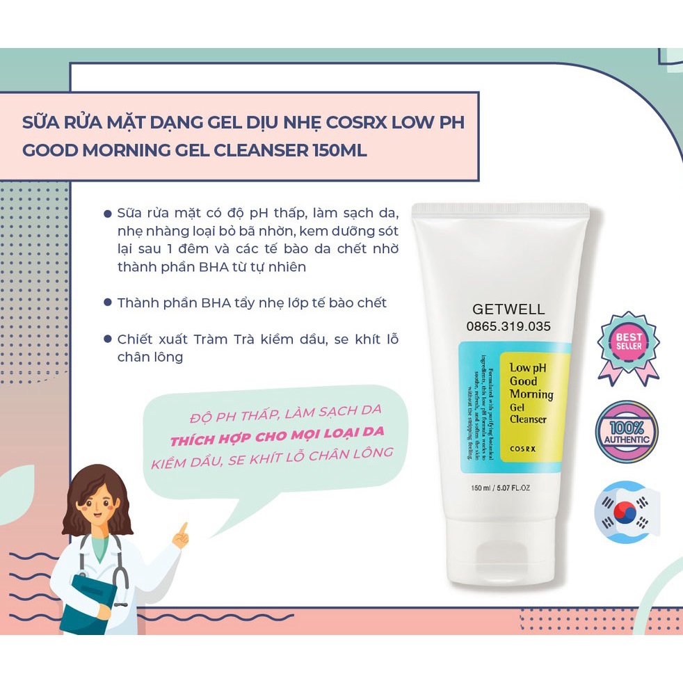 Sữa Rửa Mặt Cosrx Low pH Good Morning Gel Cleanser 150ml Chính Hãng