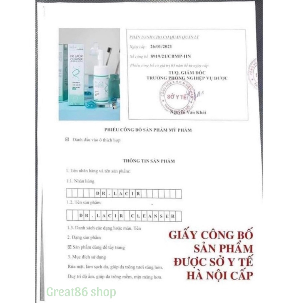 Sữa rửa mặt great86 sữa rửa mặt dịu nhẹ Dr lacir cho da khô da nhạy cảm giúp da trắng sáng sạch sâu 150ml