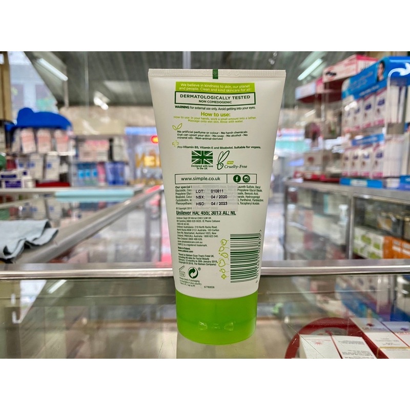 Sữa rửa mặt Simple Kind to Skin Moisturising Facial Wash với công thức làm sạch dịu nhẹ không những làm sạch sâu trong từng lỗ chân lông, lấy đi bụi bẩn dầu thừa cùng cặn bã nhờn, ngăn ngừa tình trạng mụn xuất hiện trên da mà Simple còn bổ sung độ ẩm thích hợp để da k