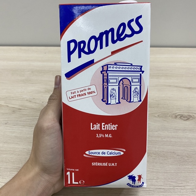Sữa tươi nguyên kem PHÁP Promess 1L Thành phần: Sữa bò tươi nguyên kem tiệt trùng. Thương hiệu: PROMESS Xuất xứ: PHÁP Thể tích: 1L Bảo quản: bảo quản ở nhiệt độ bình thường nơi khô ráo thoáng mát. Sau khi mở hộp, bảo quản trong tủ lạnh ở nhiệt độ < 6 độ C và dùng