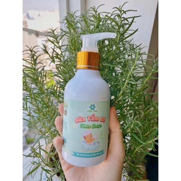 Sữa tắm bé thảo dược Mộc Tâm 200ml * Thành phần: - Trà xanh, khổ qua rừng, hương nhu, ké đầu ngựa, gừng, bồ hòn, chiết xuất dầu dừa, tinh dầu tràm, dầu khuynh diệp và một số thảo dược khác * Công dụng: - Làm sạch da, hỗ trợ chống cảm, viêm hô hấp cho bé vui khoẻ, mẹ