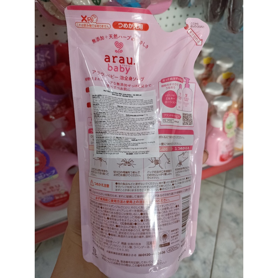Page : "Xe đẩy nhật Hà Nội": https://www.facebook.com/xedaynhatcu Địa chỉ showroom : Số 2, ngõ 603/58 Lạc Long Quân - Tây Hồ - Hà Nội Sdt: 0918005155 Mua tại shop Giảm 8% so với giá giảm trên shopee. Thông Tin Sản Phẩm ☘️☘️☘️MUA COMBO CHAI VÀ TÚI CHƯƠNG TRÌNH KHUYẾN MẠI CHO SẢN PHẨM #ARAU_BABY #MADE_IN_JAPAN Mua 1 chai tắm 450m tặng 1 túi 400ml ❤️ 💋💋💋💋💋 Sữa tắm gội Arau Baby 450ml được chiết xuất 100% từ thảo mộc tự nhiên sẽ mang lại những giây phút thư giãn và thoải mái cho bé yêu khi tắm, bảo vệ làn da mỏng manh của trẻ nhỏ. Sữa tắm không chỉ giúp mẹ làm sạch làn da bé mà còn giúp làn da bé mềm mại hơn sau mỗi lần tắm. Sản phẩm không chứa phụ gia hay các chất tạo màu, tạo mùi, đảm bảo an toàn tuyệt đối, giúp các mẹ yên tâm hơn khi tắm cho bé yêu. Thành phần của sản phẩm Sản phẩm được chiết xuất từ các loại thảo mộc tự nhiên gồm: tinh dầu hoa oải hương, chiết xuất lá tía tô, chiết xuất lá hương thảo. 💋Đặc điểm nổi bật của sản phẩm - Sữa tắm gội Arau Baby 450ml nhẹ nhàng làm sạch da bé với các thành phần tự nhiên như tinh dầu hoa oải hương, chiết xuất lá tía tô lá hương thảo giúp mẹ chăm sóc và làm làn da bé yêu thư giãn suốt cả ngày sau khi tắm và giữ cho da bé luôn mềm mại và mịn màng.Với các dưỡng chất thiên nhiên được cung cấp, tắm gội Arau Baby sẽ đem đến làn da mịn màng, khỏe mạnh cùng mái tóc suôn mềm, bóng mượt cho bé. - Sản phẩm không chứa phụ gia, chất làm sạch tổng hợp, chất tạo hương, chất tạo màu, chất bảo quản, an toàn tuyệt đối cho bé yêu khi tiếp xúc giúp mẹ an tâm khi cho bé sử dụng. - Ngoài chức năng làm sạch, sữa tắm Arau Baby còn mang lại làn da mịn màng cùng hương thơm thư giãn, cho bé yêu thoải mái vui đùa khi tắm. - Bình được thiết kế với cơ chế tạo bọt, giúp tiết kiệm và thuận tiện cho mẹ khi tắm cho bé. - Các bọt xà phòng nhanh chóng bị nước làm sạch, giúp bé không bị lạnh vào mùa đông khi tắm. 💋Hướng dẫn sử dụng sản phẩm - Làm ướt đầu bé, sau đó cho một lượng vừa đủ, nhẹ nhàng xoa lên đầu, mát xa nhẹ nhàng rồi tráng lại bằng nước sạch, lau khô đầu bé. - Làm ướt cơ thể bé trước khi cho một lượng vừa đủ bọt nước tắm Arau Baby, xoa đều lên da. Tắm kết hợp với mát xa để đạt hiệu quả tối đa cho bé. Sau đó tắm lại với nước sạch. 💋Lưu ý về sản phẩm - Để xa tầm tay trẻ em. - Không sử dụng sản phẩm lên vùng da bị thượng. - Nếu da của bé bị kích ứng lập tức ngưng sử dụng sản phẩm và gặp nhân viên y tế để chữa trị. - Không may uống phải sữa tắm, cần uống nhiều nước lọc. Nếu sản phẩm dây vào mắt dùng nước rửa sạch.