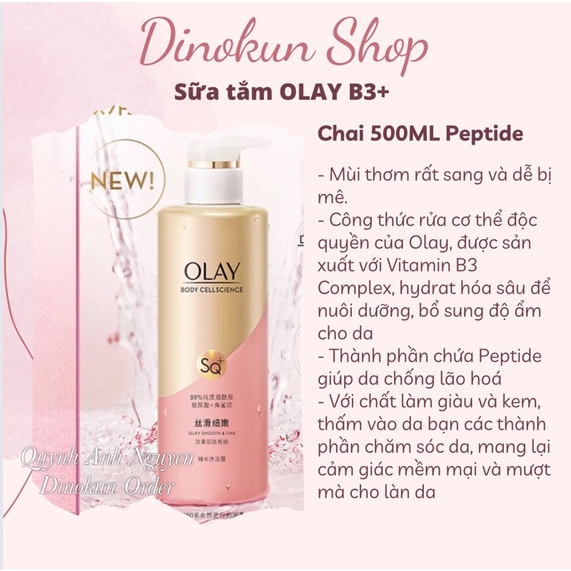 Sữa tắm trắng da Olay B3+ VitaminC - Peptipe - HA trắng da mờ thâm chai lớn 500ml và 730ml
