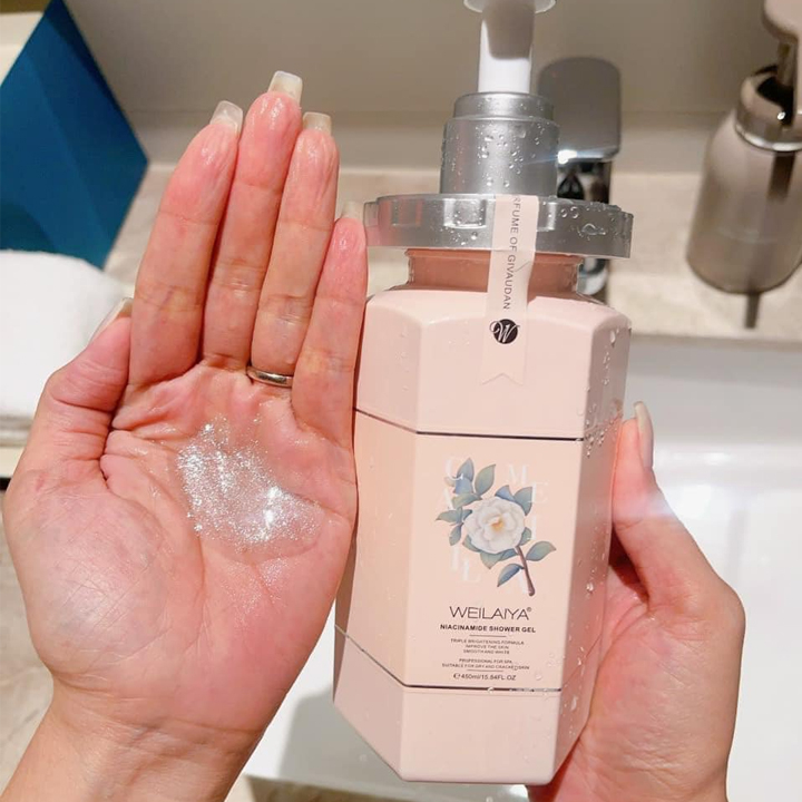 Sữa tắm Weilaiya Niacinamide Shower Gel hoa trà hương quyến rũ 450ml trắng da thơm lâu cấp ẩm cho da mịn màng