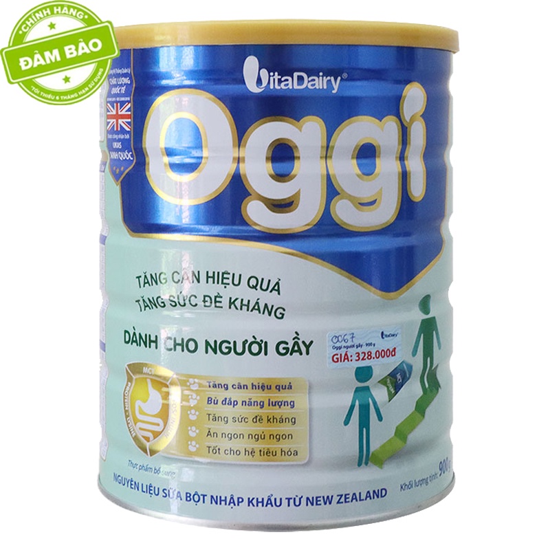 🌟 Đối tượng sử dụng: Người gầy, người cần tăng cân (trên 3 tuổi) 🌟Công dụng của sữa: 👉TĂNG CÂN HIỆU QUẢ Với công thức dinh dưỡng cao năng lượng, đậm độ dinh dưỡng 1.2Kcal/ml giúp tăng cân hiệu quả và duy trì cân nặng ổn định. Chất béo chuỗi trung bình MCT hấp thu nhanh và trực tiếp, giúp cung cấp năng lượng nhanh chóng và hiệu quả. 👉TĂNG SỨC ĐỀ KHÁNG Vitamin A, C, E, Kẽm, Selen: Giúp tăng cường sức đề kháng, hỗ trợ hoạt động của hệ miễn dịch, chống lại các tác nhân gây bệnh từ môi trường, đem lại một cơ thể khỏe mạnh 👉ĂN NGON NGỦ NGON Lysine, Vitamin nhóm B: Kích thích cảm giác ăn ngon miệng, thúc đẩy quá trình chuyển hóa dinh dưỡng trong cơ thể, giúp ăn ngon, ngủ ngon. 👉BÙ ĐẮP NĂNG LƯỢNG Một ly pha chuẩn 205ml cung cấp 247Kcal, sử dụng tiện lợi như một bữa ăn phụ giàu dinh dưỡng, giúp bù đắp lại những năng lượng thiếu hụt hoặc bổ sung năng lượng cho hoạt động hàng ngày. 👉TỐT CHO TIÊU HÓA Chất xơ hòa tan (FOS/Ilunin): Giúp tăng cường sự cân bằng hệ vi khuẩn đường ruột, giúp nhuận tràng, giảm táo bón.. 🥛Hướng dẫn pha sữa -Sử dụng muỗng có sẵn trong hộp pha 6 muỗng gạt Oggi (tương đương 55,8g) với 180ml nước chín ấm (khoảng 40-500C). Khuấy đều cho đến khi hòa tan hoàn toàn và sử dụng ngay sau khi pha. -Dùng 2 – 3 ly mỗi ngày tùy theo nhu cầu dinh dưỡng của mỗi người hoặc theo hướng dẫn của bác sĩ sẽ đạt hiệu quả tốt nhất. ✅Lưu ý: Bảo quản hộp sữa ở nơi thoáng mát, không ẩm ướt và tránh ánh nắng mặt trời chiếu vào làm ảnh hưởng đến chất lượng của sữa. Hộp sữa đã mở cần phải được sử dụng trong vòng 1 tháng. ✨Sản phẩm này không phải là thuốc và không có tác dụng thay thế thuốc chữa bệnh