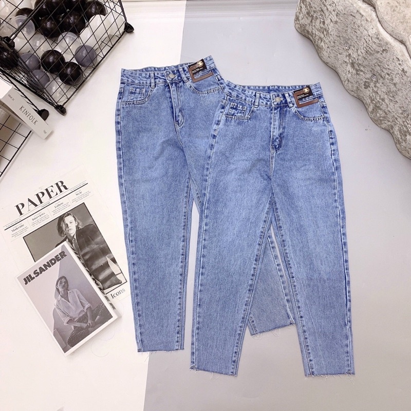 SAle Quần bò nữ, Quần Baggy jean nữ lưng cao phong cách, Cạp quần cao vừa phải chất bò mịn đẹp