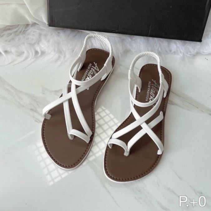Sandal dây mảnh nữ xỏ ngón chéo phong cách thời trang đi học đi làm, Giày dép sandal nữ đi học thời trang đế bệtưn