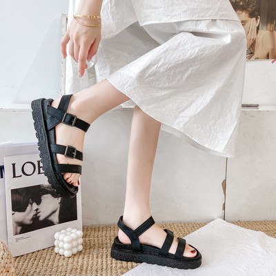 SANDAL ULZZANG HAI QUAI ÊM CHÂN, KHÔNG THẤM NƯỚC ĐEN TRẮNG ẢNH THẬT
