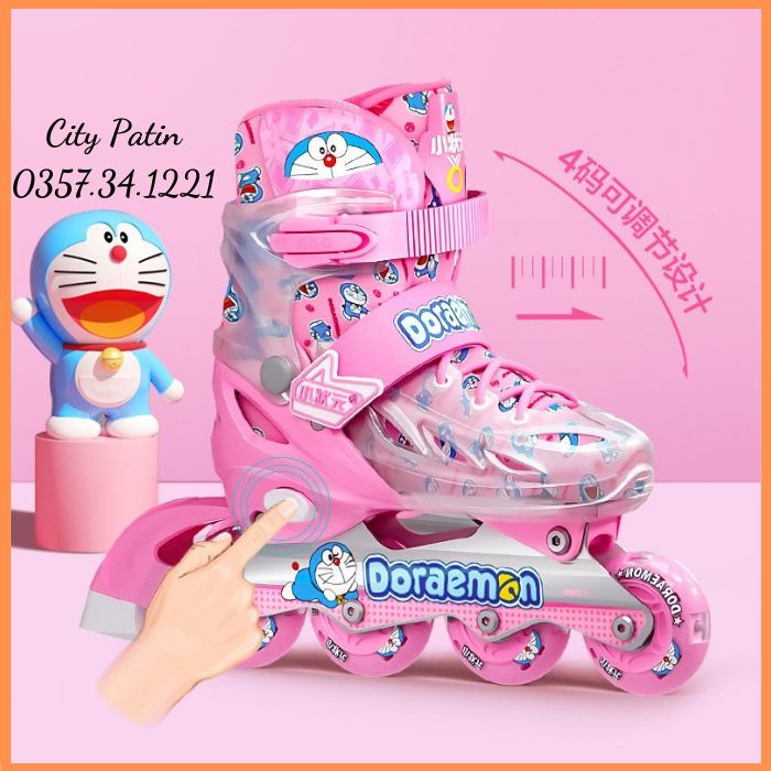 Giày trượt patin trẻ em, giày doraemon sáng đèn, Patin bánh bon mượt, Càng chắc chắn, đi êm chân, giày đi