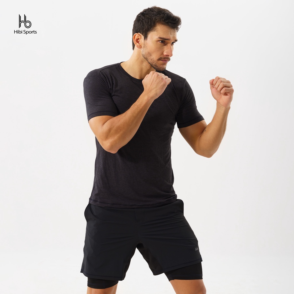 Áo tập gym nam Hibi Sports T102 - Phối màu chéo, form ôm vừa, kiểu ngắn tay