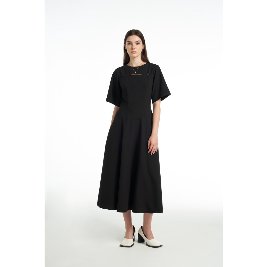 Đầm trắng tay bồng giả yếm đen chiết eo form dài KHÂU BY CQ Izanami