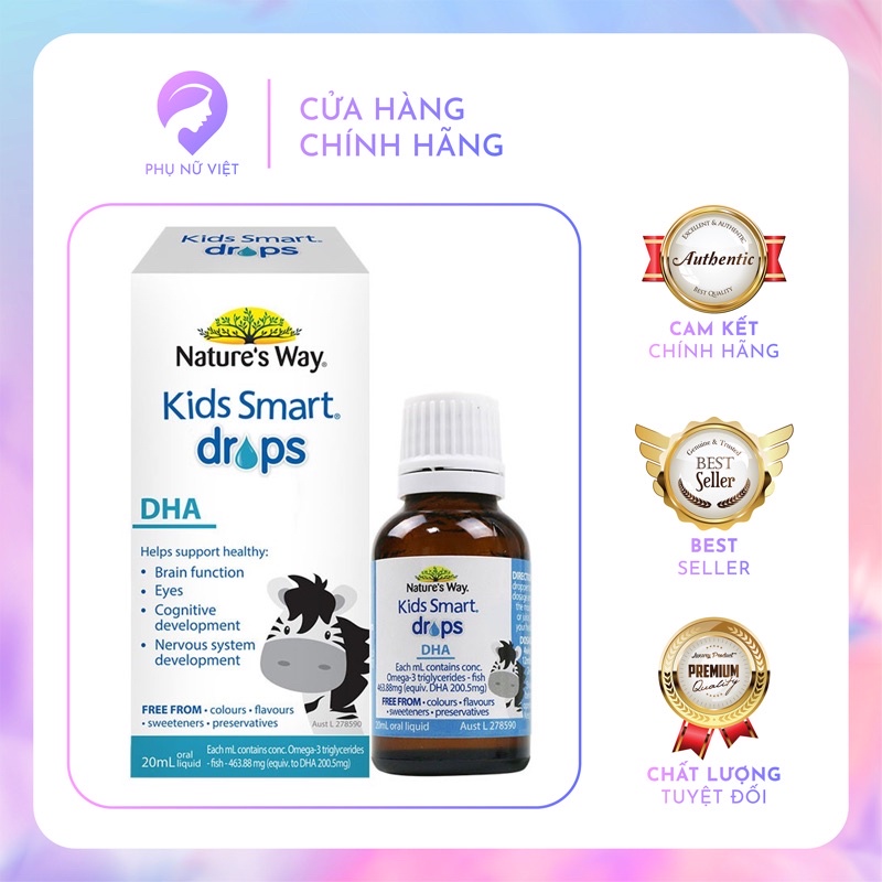 Bổ sung DHA dạng giọt Nature Way Kids Smart Drops DHA lọ 20ml. trẻ thông minh, phát triển não bộ bé từ sơ sinh