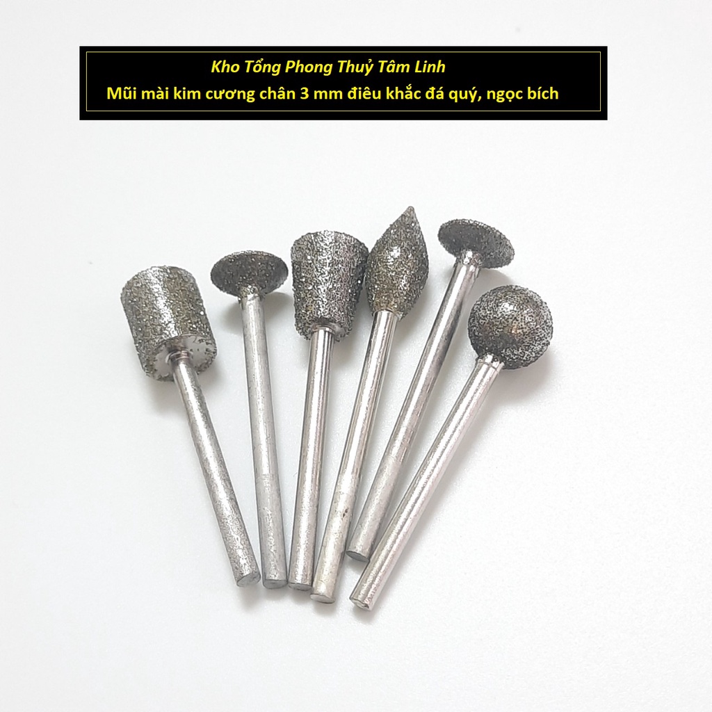 Mũi mài kim cương cao cấp chạm khắc ngọc điêu khắc đá chân 3 mm| Kho tổng Phong Thuỷ Tâm Linh