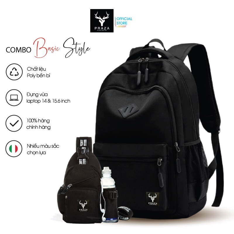 Balo Thời Trang Học Đường PRAZA, Balo Nam Nữ Có Ngăn Đựng Laptop 15.6 Inch - BL172 - Hãng Phân Phối Chính Thức