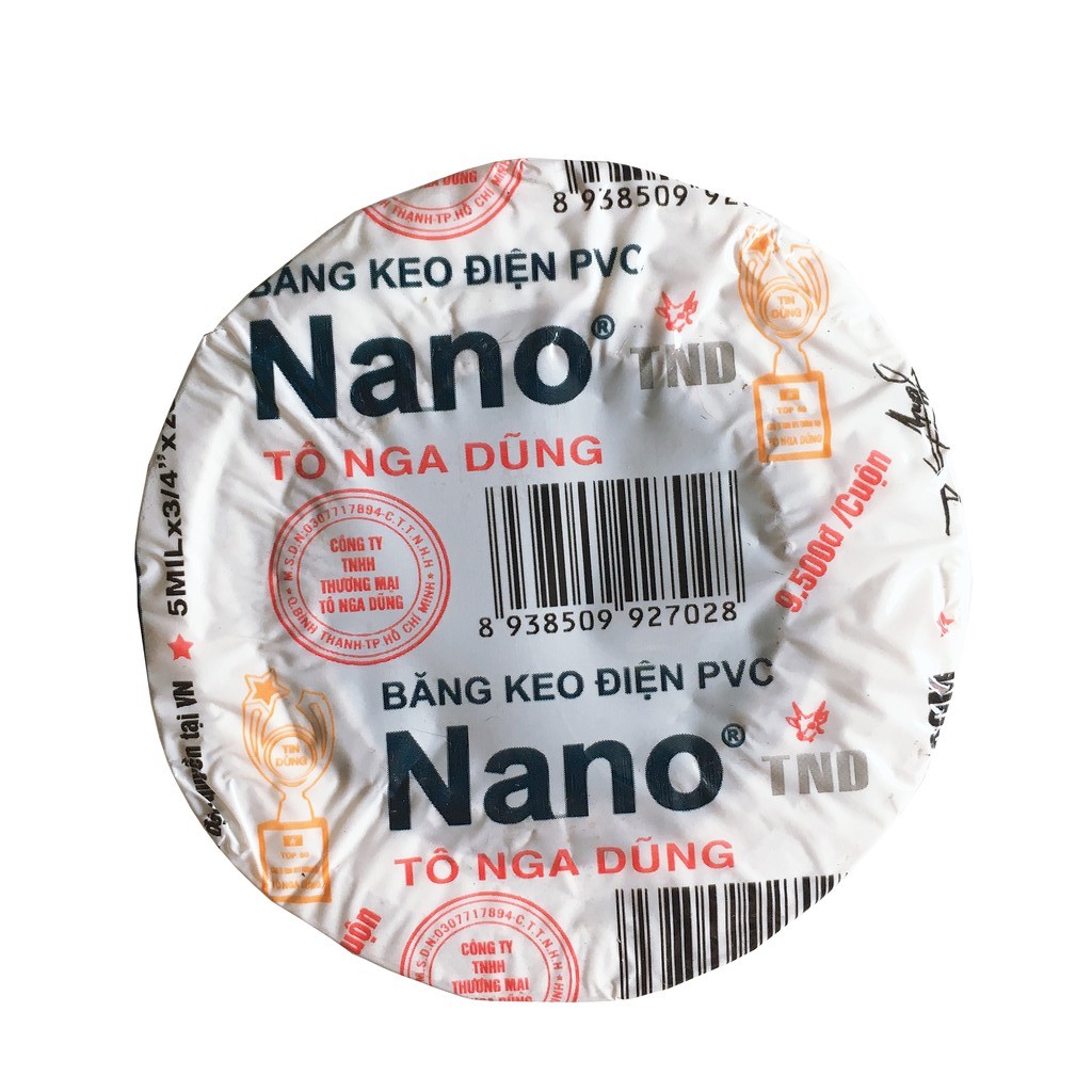 Băng dính, băng keo điện PVC Nano TND Tô Nga Dũng tải nhiệt tốt cho dây điện, khổ rộng 1.8cm, dài 18m