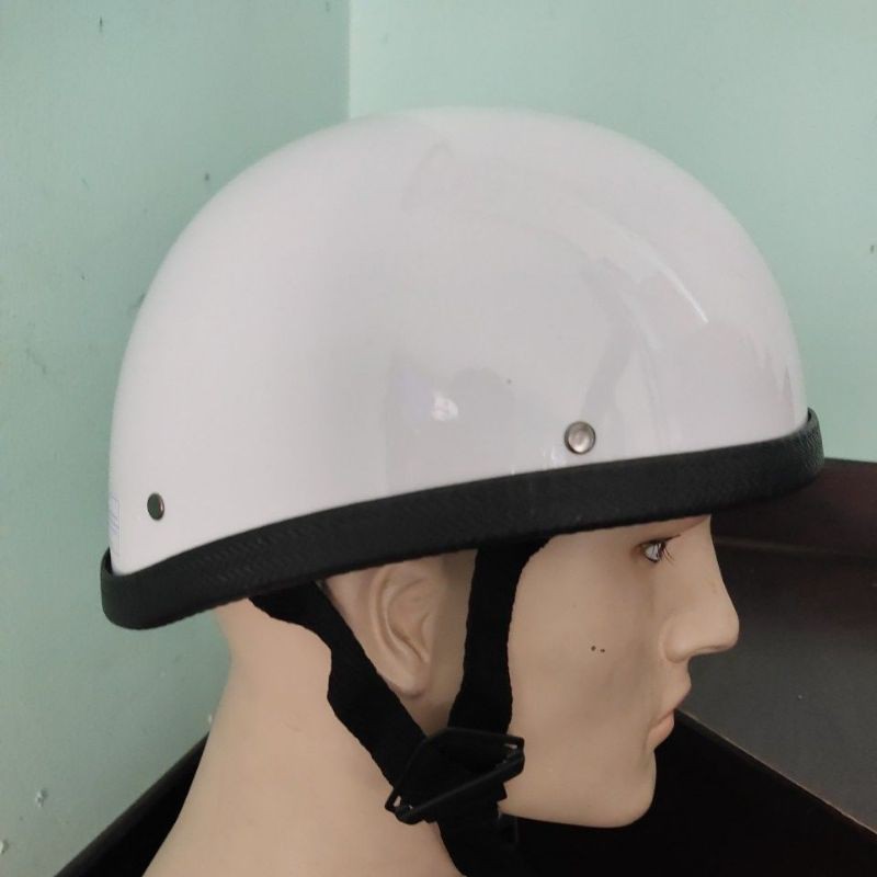 Mũ bảo hiểm lưỡi trai Vespa trắng bóng trí liễu đai da nam nữ đội freesize nhiều màu