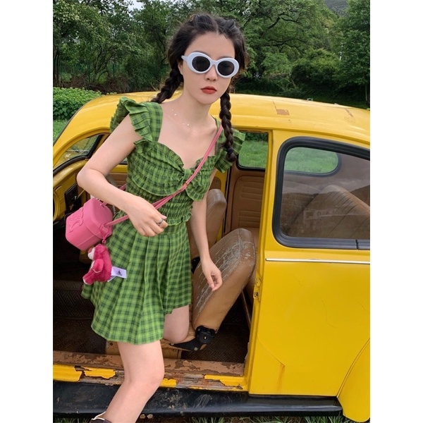 Set áo croptop + chân váy phong cách dễ thương bánh bèo nữ